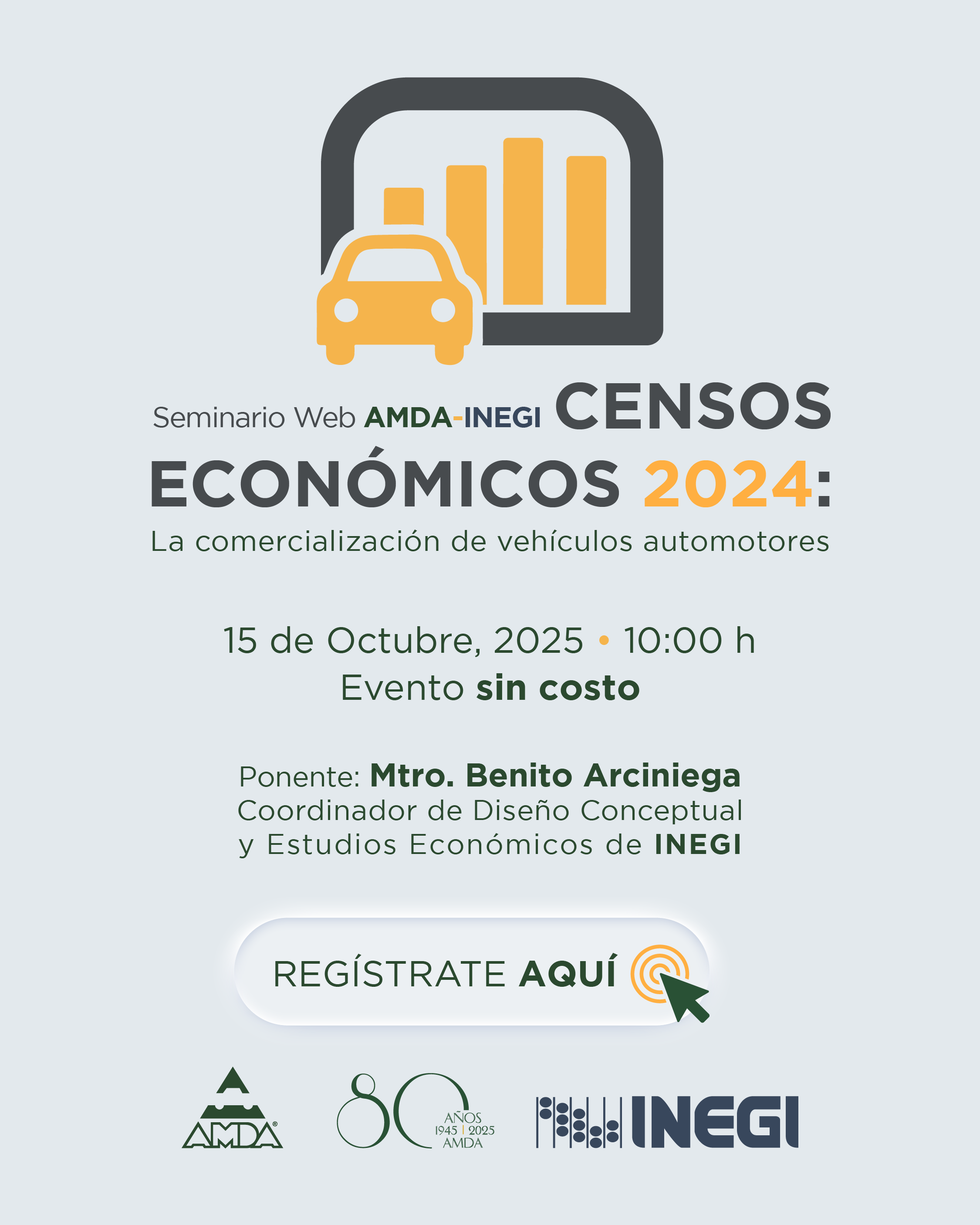 Descripción del evento "Seminario web: Censos Económicos 2024: La comercialización de vehículos automotores"